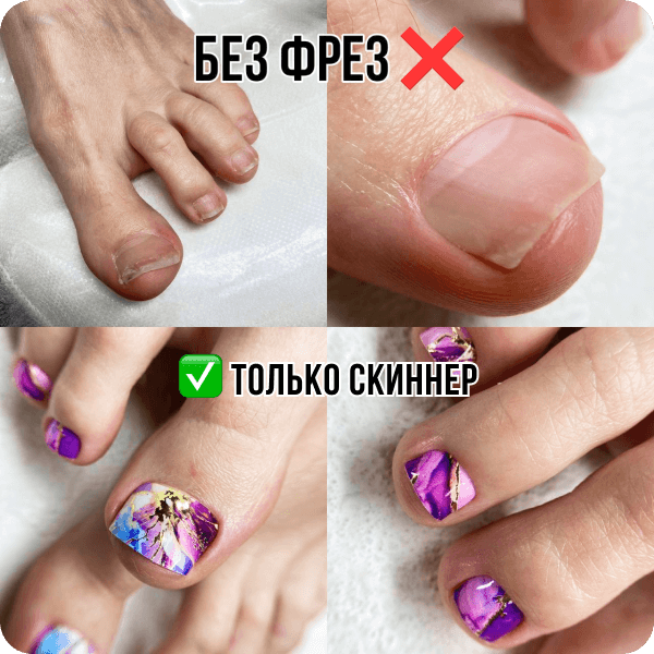 В работе не используются фрезы и роторные движения. В ней невозможно перепилить ноготь или поранить кутикулу